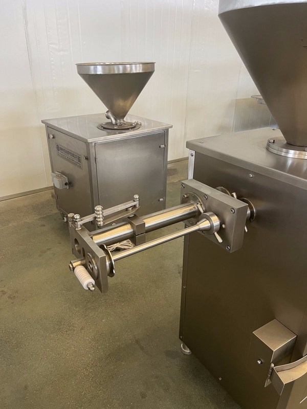 Una máquina de enema de carne, o una máquina de relleno de carne o relleno de salchichas, se utiliza en la industria de procesamiento de alimentos para llenar las cáscaras con mezclas de carne molida.Esta máquina se utiliza comúnmente para producir varios tipos de salchichas y otros productos de carne rellenaEl proceso consiste en cargar la máquina con la mezcla de carne preparada, que luego se empuja a través de una boquilla en una carcasa, generalmente hecha de materiales naturales o sintéticos.